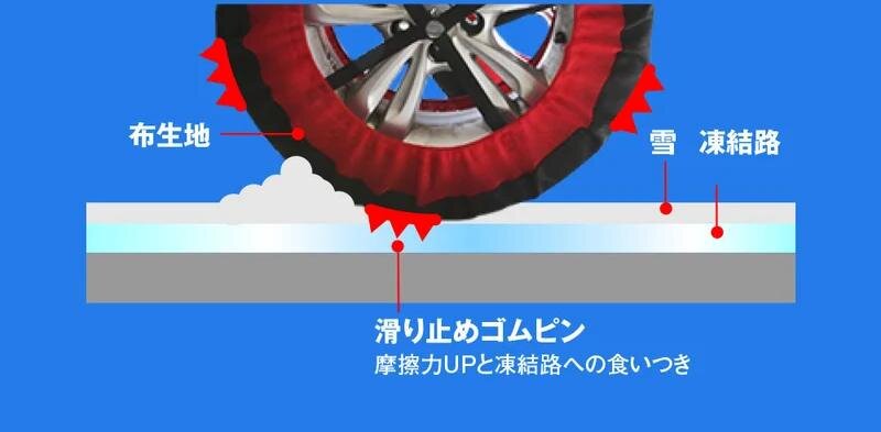 【布製タイヤチェーン】連休後半は雪に注意!“ゴムピン”の強力グリップで凍結道も怖くない