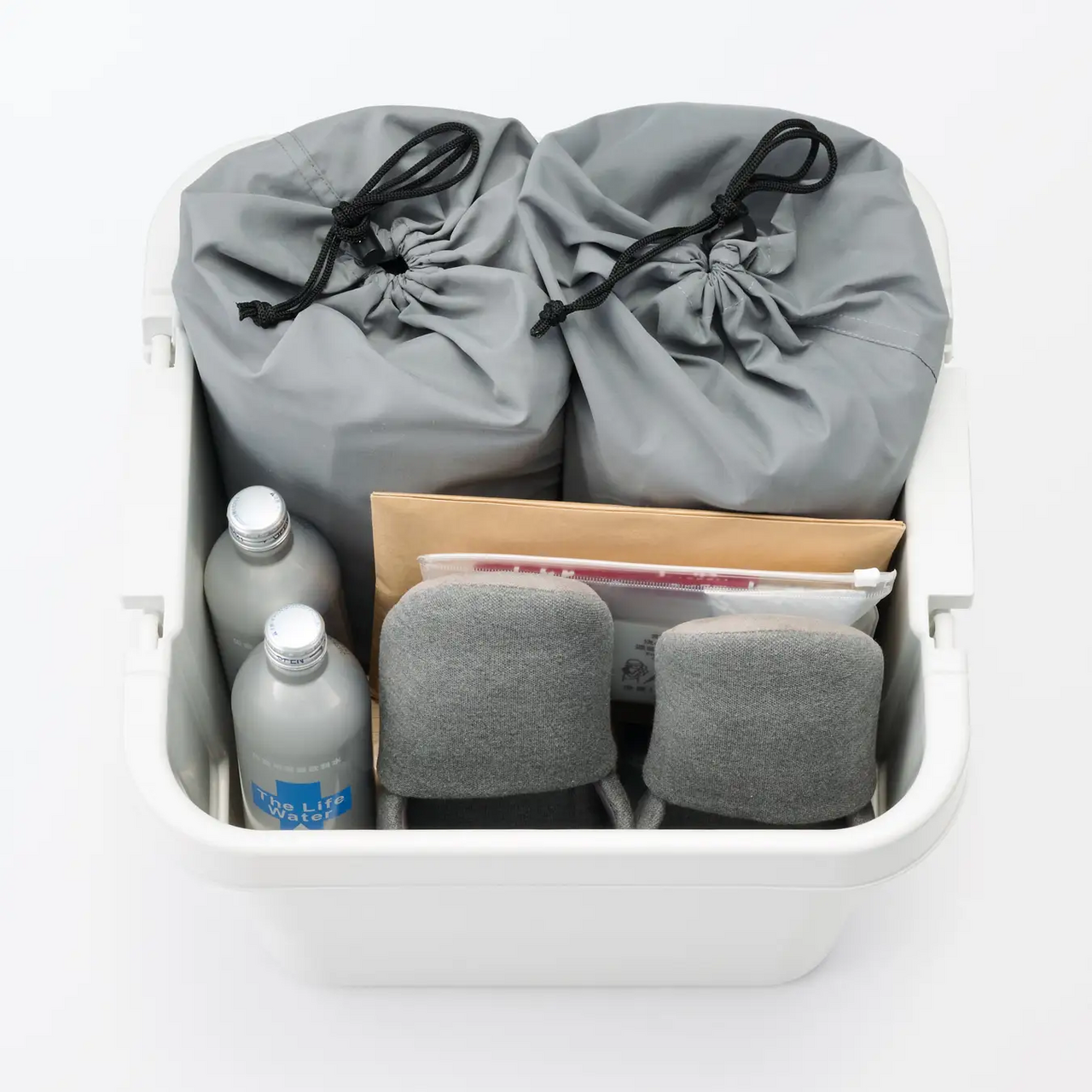 空気を抜けば、写真のとおり防災リュックやクローゼットの下段にもすっぽり。非常時に身体への負担を減らしつつ、普段は仮眠や昼寝に使えます。