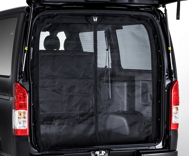 アウトドアや車中泊でも活躍するのが、この「バックドアネット」。バックドア開放時に装着することで虫の侵入を防ぎながら自然な風の流れを確保。正直夏だけでなく、年中つけておきたい!
