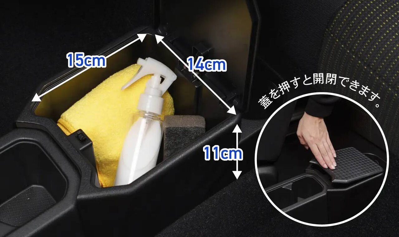 収納ボックスは縦15×横14×深さ11cmと、クロスや手袋などのアイテムをしっかり収納できます。ワンタッチ開閉のフタもつき、ホコリが入りにくいのもうれしいポイントです。