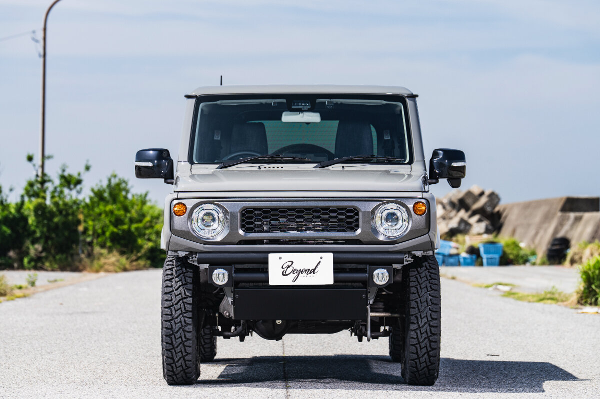 ジムニー専門カスタムブランド「BeyondJAPAN(ビヨンドジャパン)」が発表した「CODE24」。落ち着いたミディアムグレーのボディカラーに純正オプショングリルを連想させるシンプルスタイルグリルとパイプバンパーを組み合わせた、都会にもフィールドにも馴染むモデル。純正の良さを活かしたカスタムを楽しみたいという、ジムニーファン必見です!