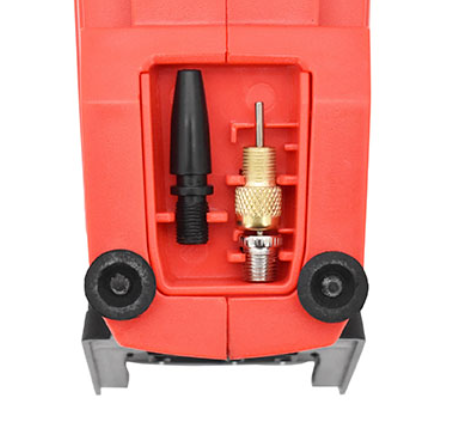 自転車などに用いられる「仏式アダプター」や、ボールなどに使われる「ニードルアダプター」、浮き輪用アダプターなどの付属アダプターを用意。収納できるホルダーも付いているので、紛失や置き忘れ防止にもつながります。