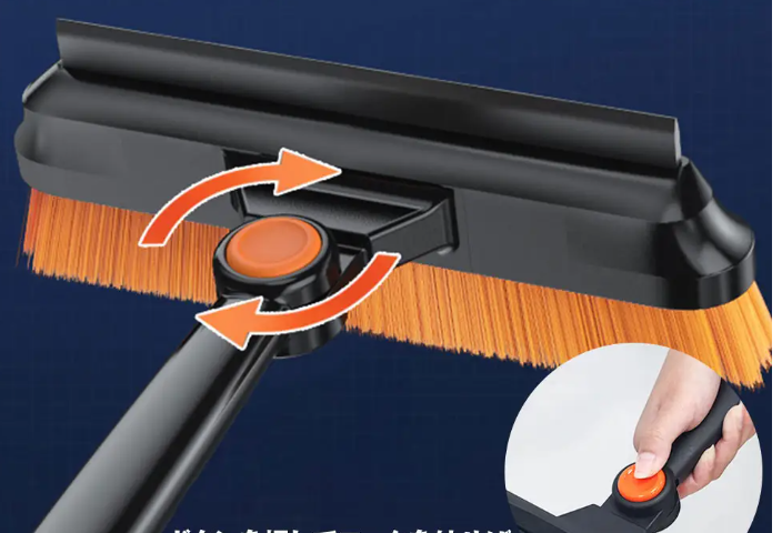シャベルは、耐久性の高いアルミ合金で補強。180度回転するブラシヘッドのおかげで、積雪を払う方向によってブラシの向きを変更しやすくなっています。