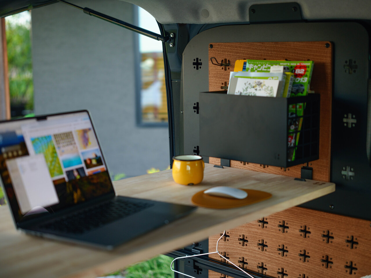 このモジュールシステムの真価は、使う人の目的によってその表情を劇的に変える点にあります。例えば平日は、25mmピッチを活かしてPCデスクや周辺機器を配置し、車内を集中できる「モバイルオフィス」に。週末になれば、ペット用品や車中泊グッズを整理する「機能的なリビング」や、重いギアを壁面に固定する「趣味のベースキャンプ」へと姿を変えます。車両のメンテナンスを妨げないボルトオン構造を採用しているため、必要なときだけ装着するといった実用性も兼ね備えています。