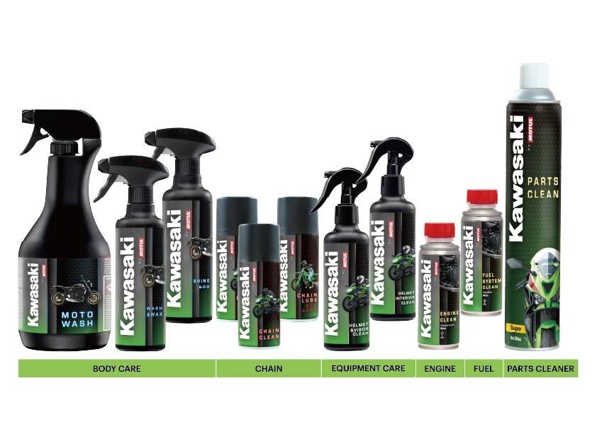 カワサキライダーにおすすめなメンテナンス用品シリーズが誕生。カワサキと高級オイルブランドMOTULが共同開発した全11種類のアイテムで、愛車をピカピカに!