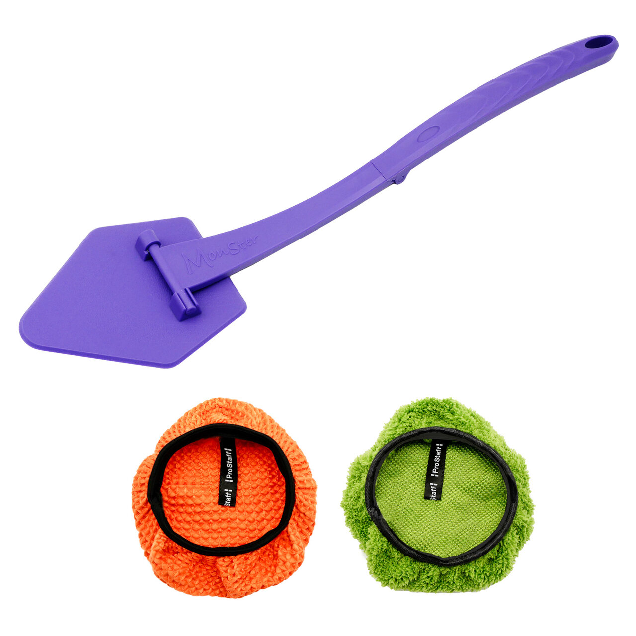 付属するのは、性格の異なる2種類の専用カバーです。「ワッフルカバー」は、凹凸加工のマイクロファイバーが手アカやヤニ汚れをかき取り、内窓のくもりを防いでクリアな視界に整えてくれます。「ふわふわカバー」は、毛足の長い超極細繊維が、ダッシュボードのホコリをやさしく絡め取ります。水滴除去や、冬場の結露した内窓の拭き上げにも最適です。