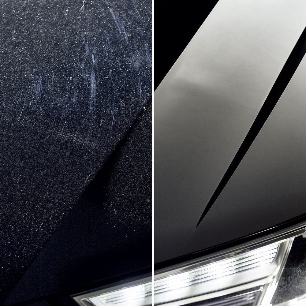 手磨きとポリッシャーのどちらにも対応し、DIYユーザーからこだわり派まで幅広く納得のいく仕上がりを実現。劣化した古い被膜をリフレッシュしながら新しい保護層を形成するため、ボディのトーンが一段階明るくなるような変化を実感できるはずです。全塗装色に対応しているため、車種を選ばず安心して使用できる点も大きなメリット。