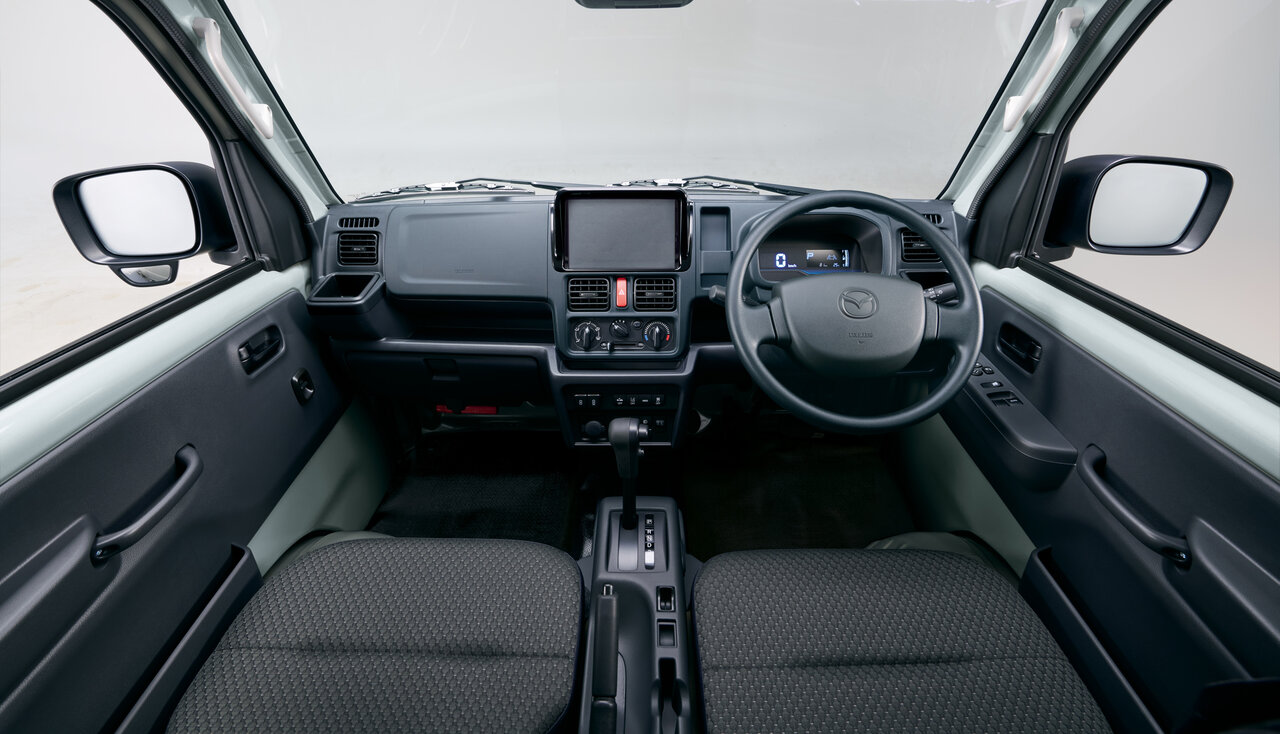 今回の商品改良における最大のトピックの一つは、フロントデザインの刷新。従来よりも精悍で力強い表情へと進化を遂げ、働く車としての信頼感と現代的なスタイリッシュさを兼ね備えています。ボディカラーには「スクラムバン」で高い人気を博している「モスグレーメタリック」を新色として追加。渋カッコいい〜!