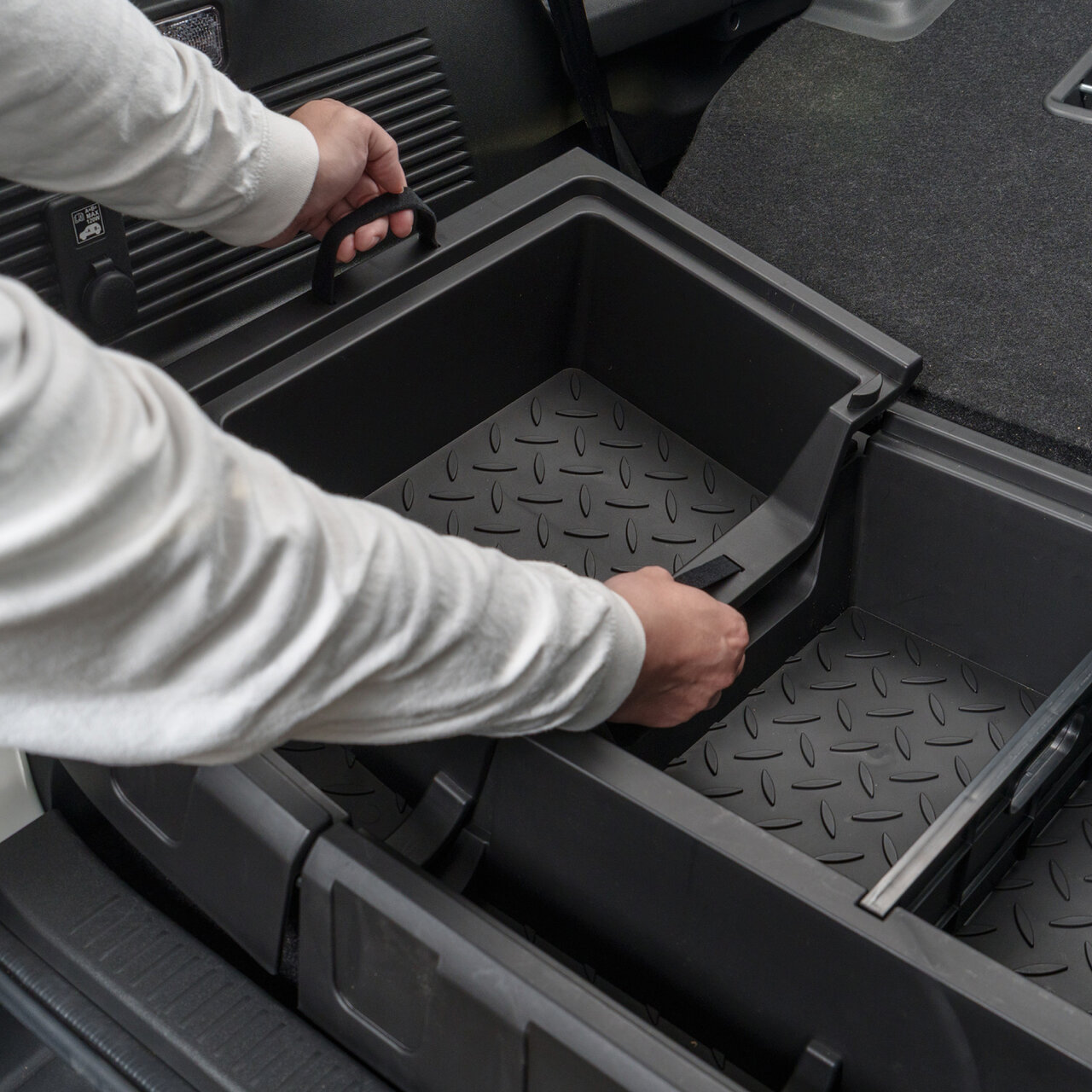 約40Lというゆとりのある収納容量を確保し、これまで置き場所に困っていたキャンプギアや工具、洗車用品などを一括して管理することが可能に。また、専用の蓋となるラゲッジボードが付属しているため、フラット化して車内をスッキリと見せることができるほか、荷物を保護してくれます。