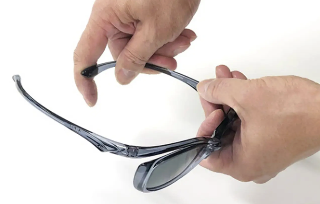 お湯で温めるだけで、自分好みのフィット感に調整可能。専門工具や特別な技術は一切いらないため、誰でも手軽に掛け心地を調整できます。テンプルの丁番には、上下から締めるダブルロック式のネジを採用。ネジの緩みとテンプルのパタツキを抑えられるだけでなく、万一緩んでもサッと締め直せます。