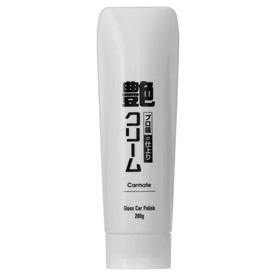 最後は、小傷やくすみを消してくれる「艶クリーム」で仕上げます。超微粒子パウダーが、小キズやくすみ、ウォータースポット、水アカをしっかり除去。グッと深みのある艶感に仕上がります。ボディはもちろん、メッキ部やバイザー、ヘッドライトなどにも使用可能。また濡れていてもOK。1本で「キズ消し+ツヤ出し+保護」の3役をこなす優れものです。