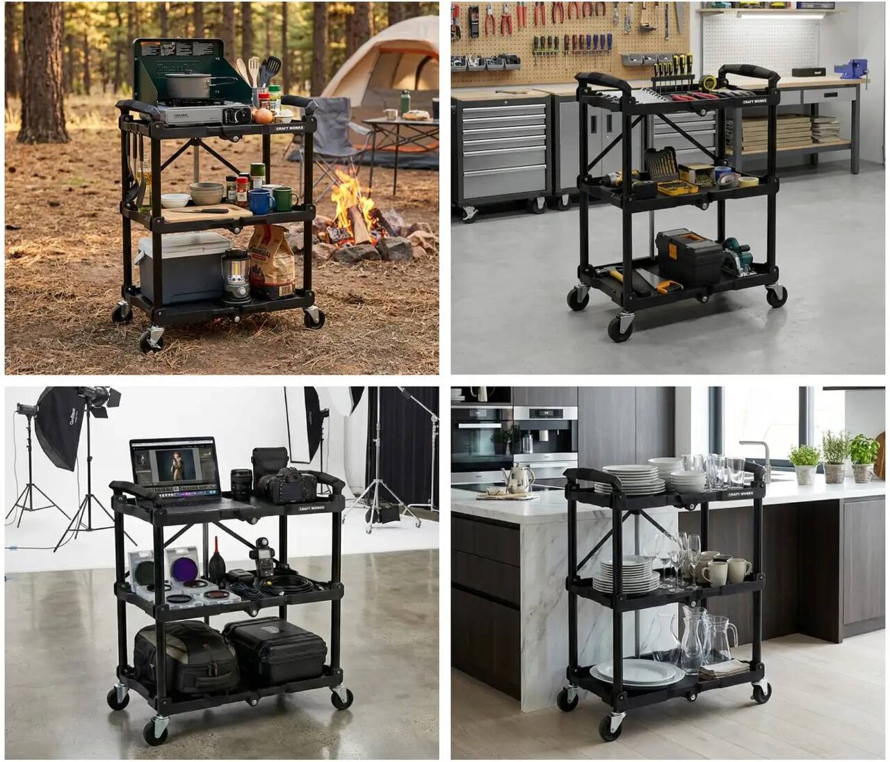 ガレージ収納の見直しや愛車のメンテナンスなどで役立つツールワゴン。自動車アクセサリブランド・CRAFTWORKS(クラフトワークス)の「クラフトワゴン」は、たっぷり積める3段設計。スイスイ運べるので現場の不便をまるっと解決できます。