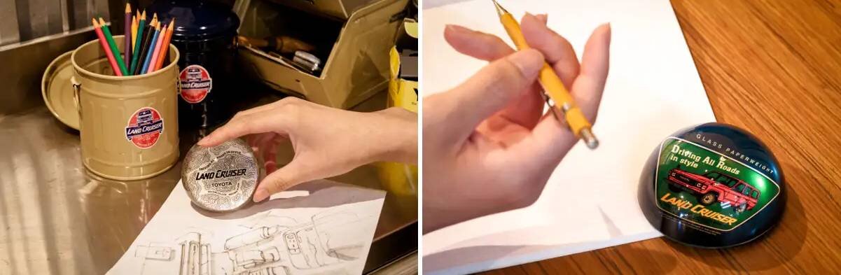 ランクルがガラスドームに浮き上がる「ペーパーウェイト」