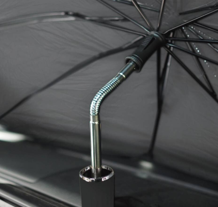 使わない時は折り畳み傘のように収納可能。シートの隙間やドアポケットに入れておけば、必要なタイミングですぐ取り出せますね。