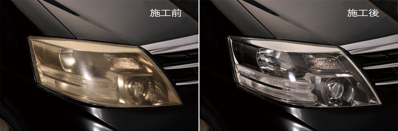 ヘッドライト用は研磨+コーティングの2ステップ