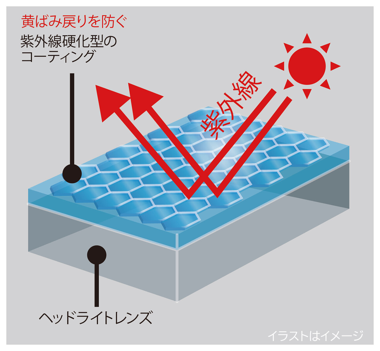コーティングには紫外線硬化型を採用。塗布後に日光に当てることで被膜が硬化し、透明感のある仕上がりを保ちやすいのもポイントです。