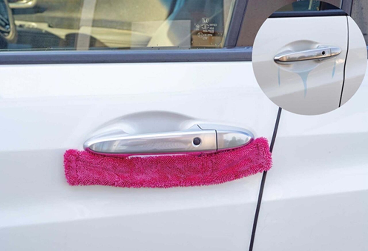 洗車後に意外と気になるのが、ドアノブ下やサイドミラーから後から垂れてくる水滴。「ドライキャッチャー」はマグネット内蔵で、気になる箇所に貼り付けるだけで水滴をキャッチしてくれます。水アカの発生を防ぎ、仕上がりの美しさをキープすることが可能です。