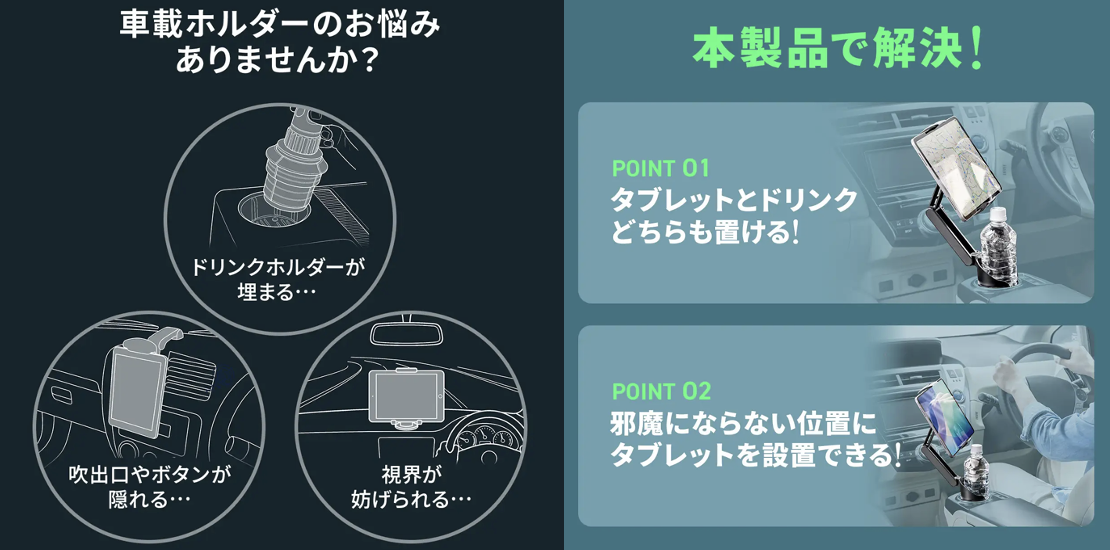 【クルマの便利グッズ】既存ホルダーに装着!スマホ&ドリンク同時セットで運転席が整う