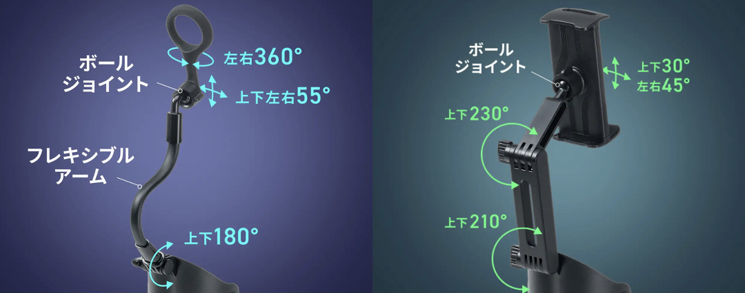 便利さも追求したいですが、視認性の確保は最優先事項。これならスマートフォンの向きを300度回転させることができ、さらには角度の微調整も思いのまま。運転席からの視認性を最優先にしたポジションに固定できるため、ナビ画面の確認もスムーズに行えます。
