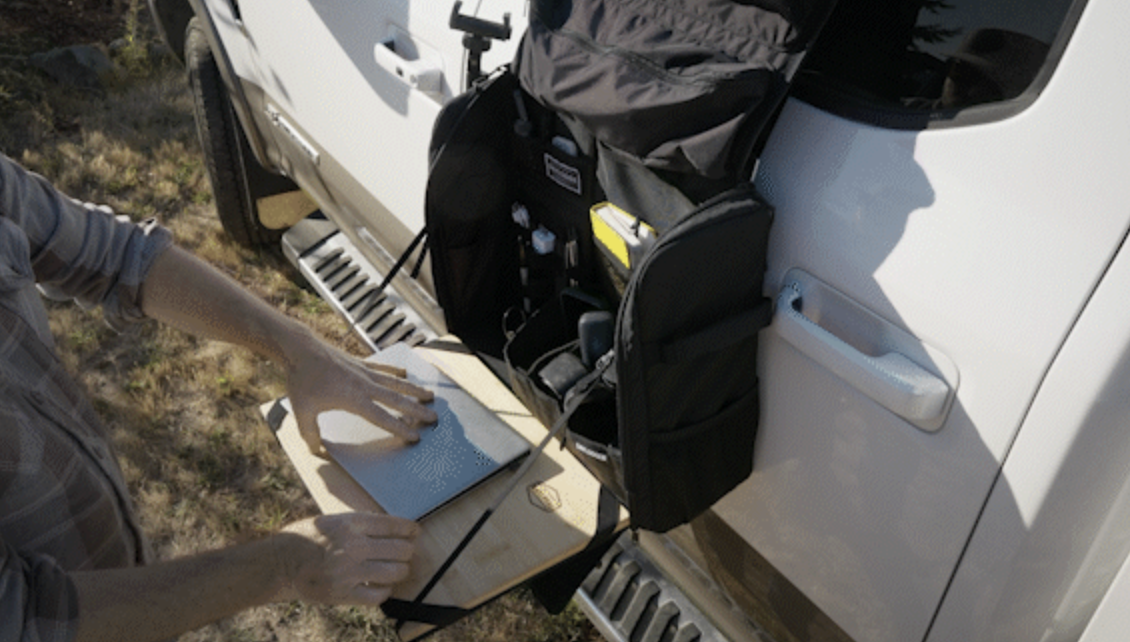【車中泊】“3秒展開”でワークスペース誕生!バッグが作業棚&簡易テーブルに変身だ