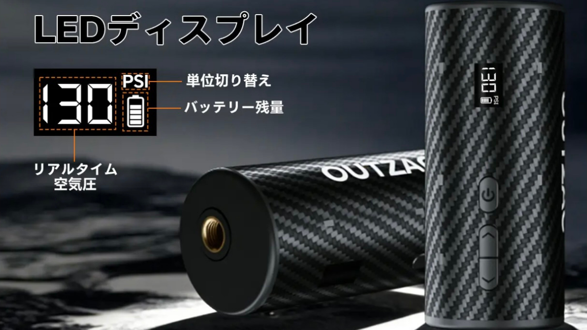 コンパクトな見た目とは裏腹に、空気圧はデジタルディスプレイでPSI/BAR両方の数値を確認可能。目標の空気圧を設定しておけば、到達した時点で自動的に停止する仕組み。感覚に頼らず、毎回正確な空気圧に合わせられるのは心強いポイントです。