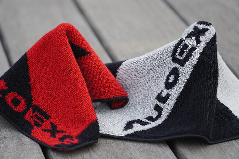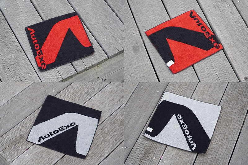 まず注目したいのが、「AutoExeロゴ ジャガードハンカチタオル」です。高品質な今治タオルで、綿100%のやわらかな肌触りと高い吸水性を兼ね備えています。