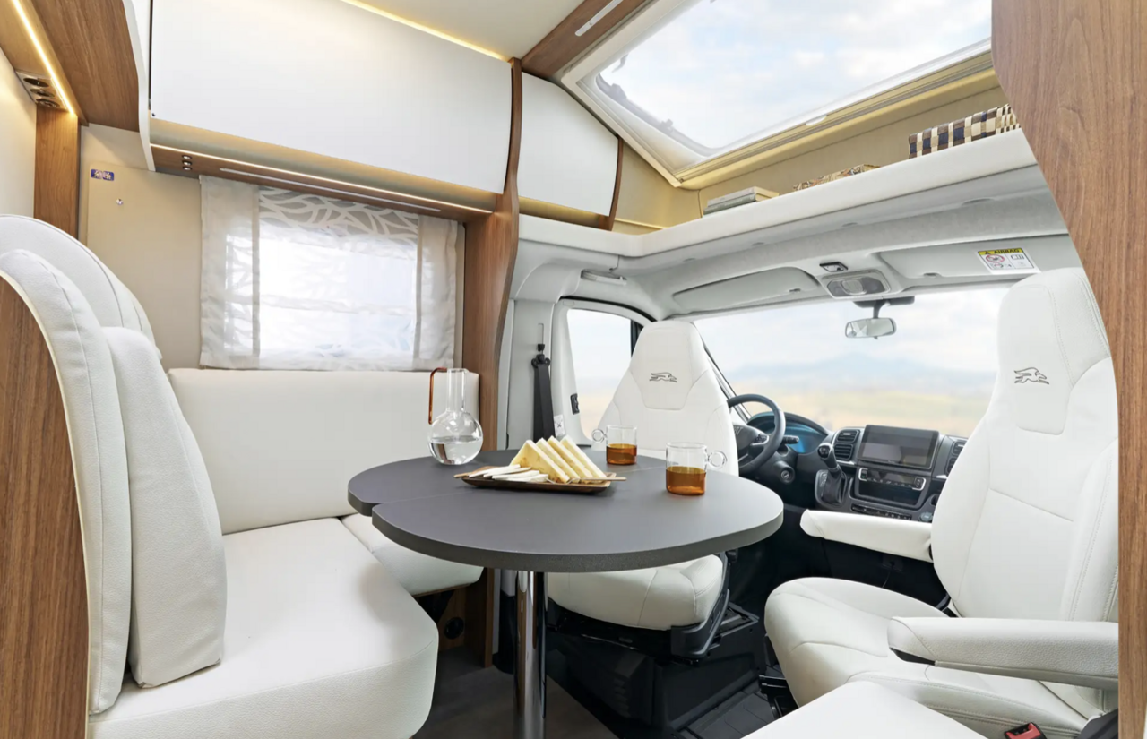 まず「Ecovip Titanio L 3019」は、スタイリッシュなフォルムと扱いやすさを両立したセミインテグラルモデル。全長約7mというサイズの中に、ゆとりある生活空間が展開されています。