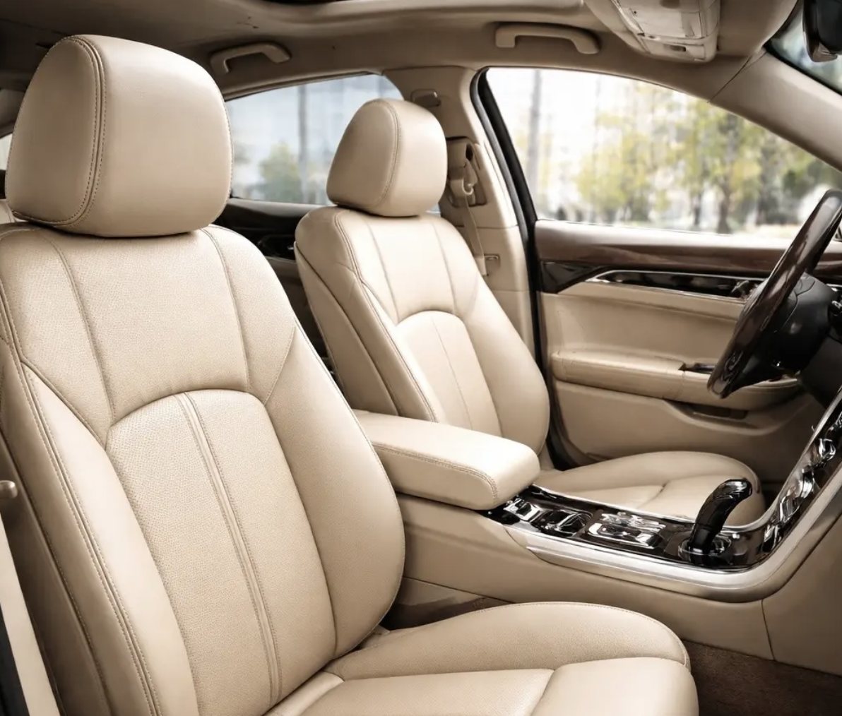 特にこだわっているのが、施工後の「質感」だそう。安価な艶出し剤にありがちな不自然なテカリやベタつきは一切なし。素材本来が持つ落ち着いた色合いを引き出し、しっとりと手に馴染むマットな質感に仕上がります。香料も配合されていないため、車内の芳香剤の香りを邪魔することなく、純粋に清潔な空間を楽しむことができます。