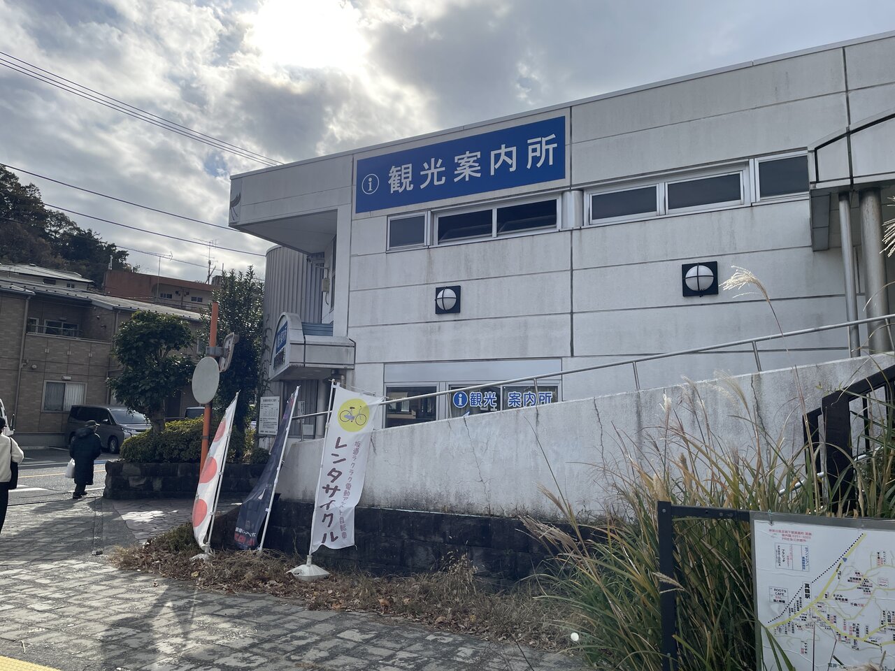 残りの駅付近にあるスポットを目指して戻ってくるも、「入れるのか?」と思うような路地へ誘導されるので、駐車場に停めて徒歩にシフト。駅付近には「真鶴町役場」や「真鶴町民センター」「真鶴情報センター」「さがみ信用金庫」といった残りのスポットが密集しているので、歩きながら立て続けにゲットしました。