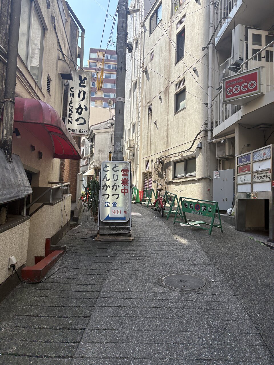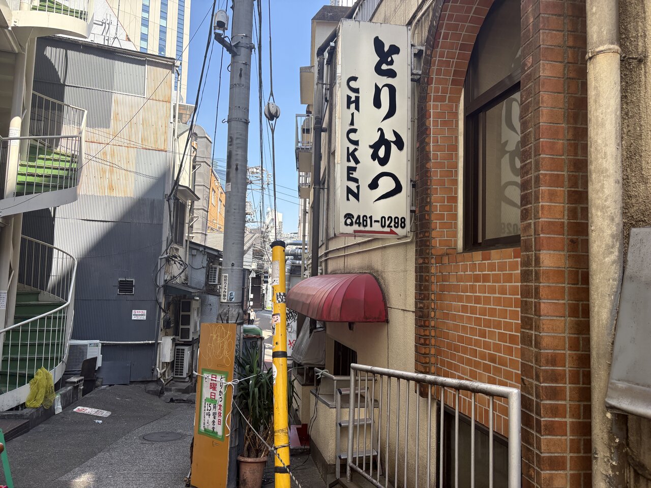 渋谷駅から道玄坂を上っていく途中にあるしぶや百軒店(ひゃっけんだな)という路地裏エリア。昭和の面影を残すその一角を進むと、「とりかつ CHICKEN」と書かれた縦長の看板が見えます。
