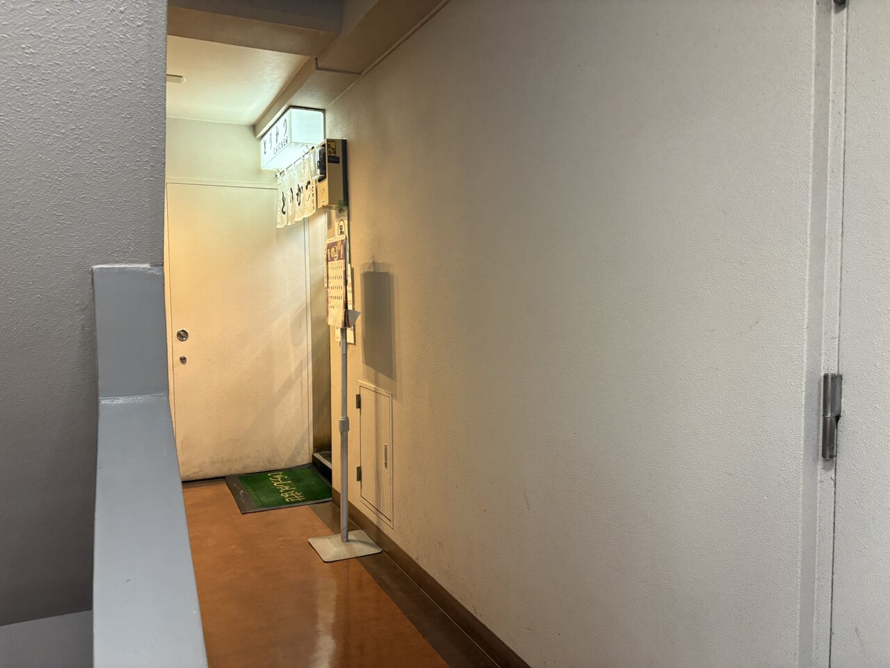 建物に入って階段を上がると「この奥です」と赤い矢印のプレートが誘い、さらに奥まった場所には白い暖簾が揺れる入口が現れます。表通りの喧騒からわずか数十メートルしか離れていないのに、まるで別世界に踏み込んだような高揚感。まさに隠れダンジョンを発見したときのワクワク感です。