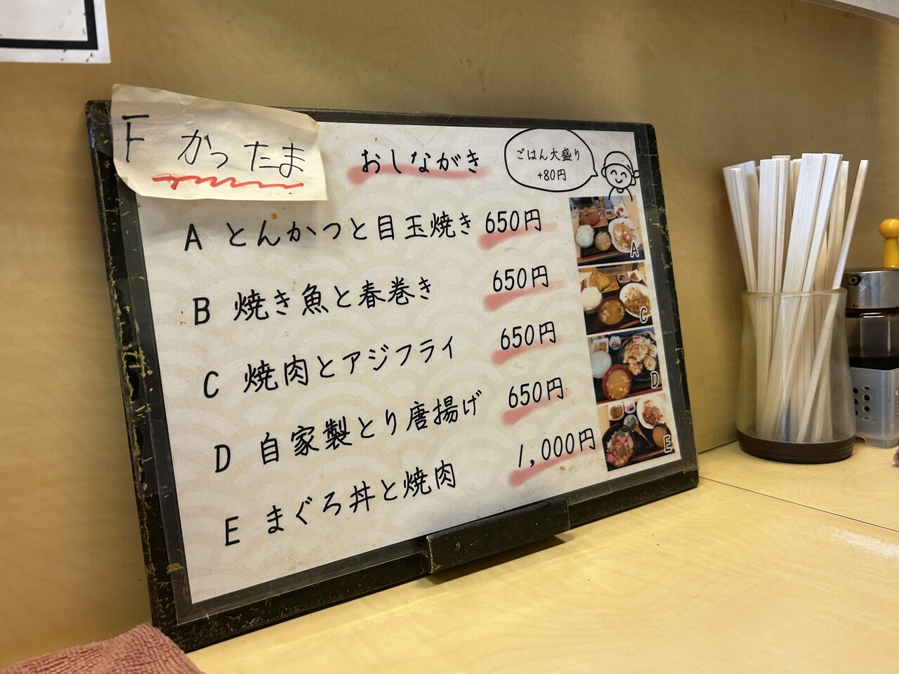 席に座って驚いたのが、豊富なメニューの数々。テーブルのおしながきに書かれているメニューのほかにも、壁にはラーメン、カレーライス、チャーハンなどの料理が張り出されていました。このメニューの数々が、市場の人々の胃袋を満たしてきたのでしょう。