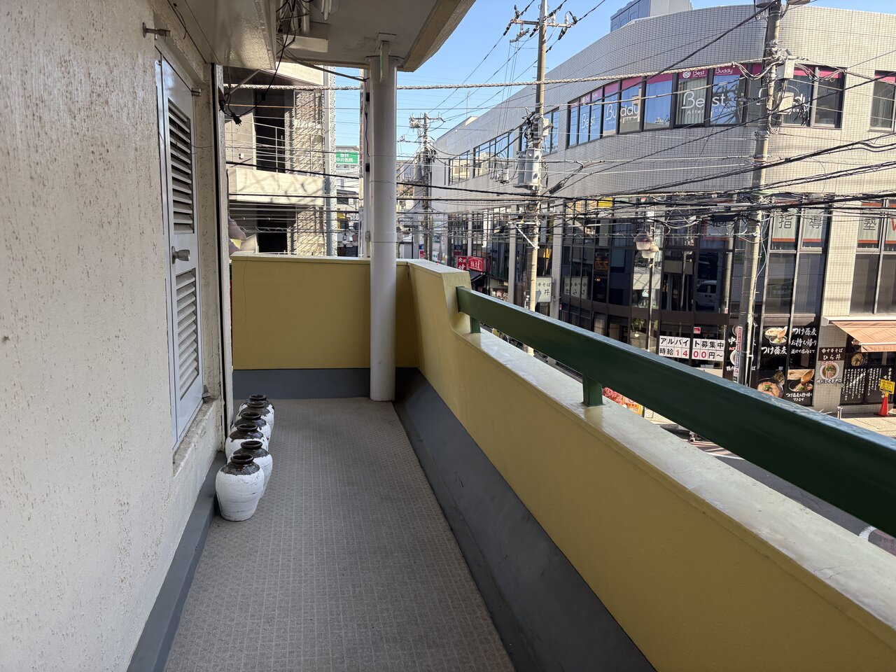 商店街の一角にある黒龍は、店が2階にありますが、まずは路面の看板が目に入ります。看板を確認してから建物の外に設けられた階段へ向かいました。