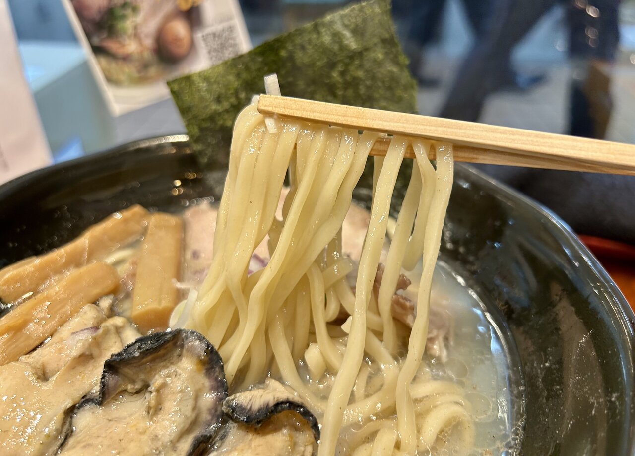 麺は中太ストレート。ツルッとした口当たりでしなやかなコシもあり、噛むほどに小麦の香りも感じられます。