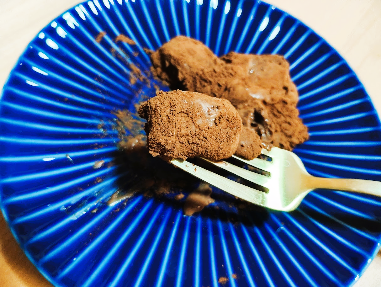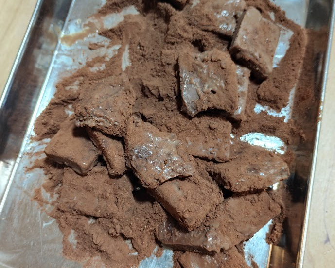 5.チョコレートをカットしてココアをまぶしたら完成