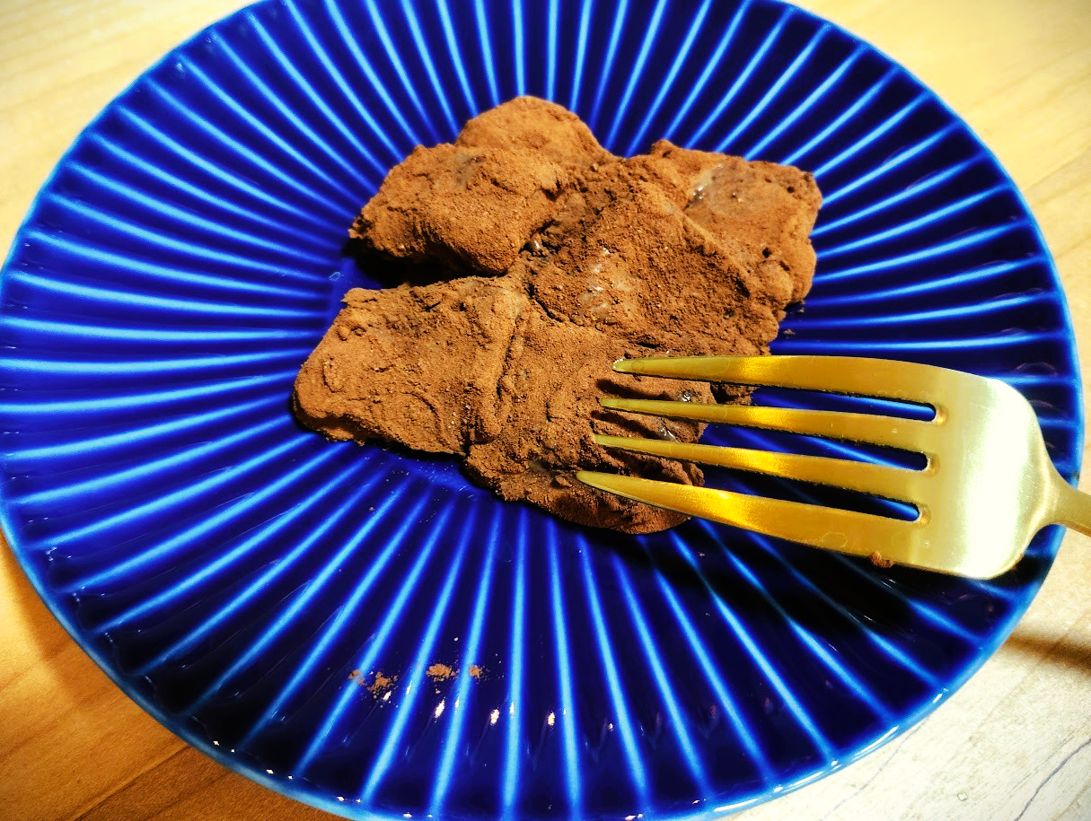 リュウジさんの「至高の生チョコレート」が完成。ミルクチョコレートと生クリームをふんだんに使っているので、このままでは甘さが全面に出てしまうかと思いきや、アールグレイの芳醇な香りがしっかりと感じられハイクオリティな生チョコを味わえました。冷やし固める前に空気を抜いたことで、舌触りがとてもなめらかでリアルに「生の食感」を堪能できます。