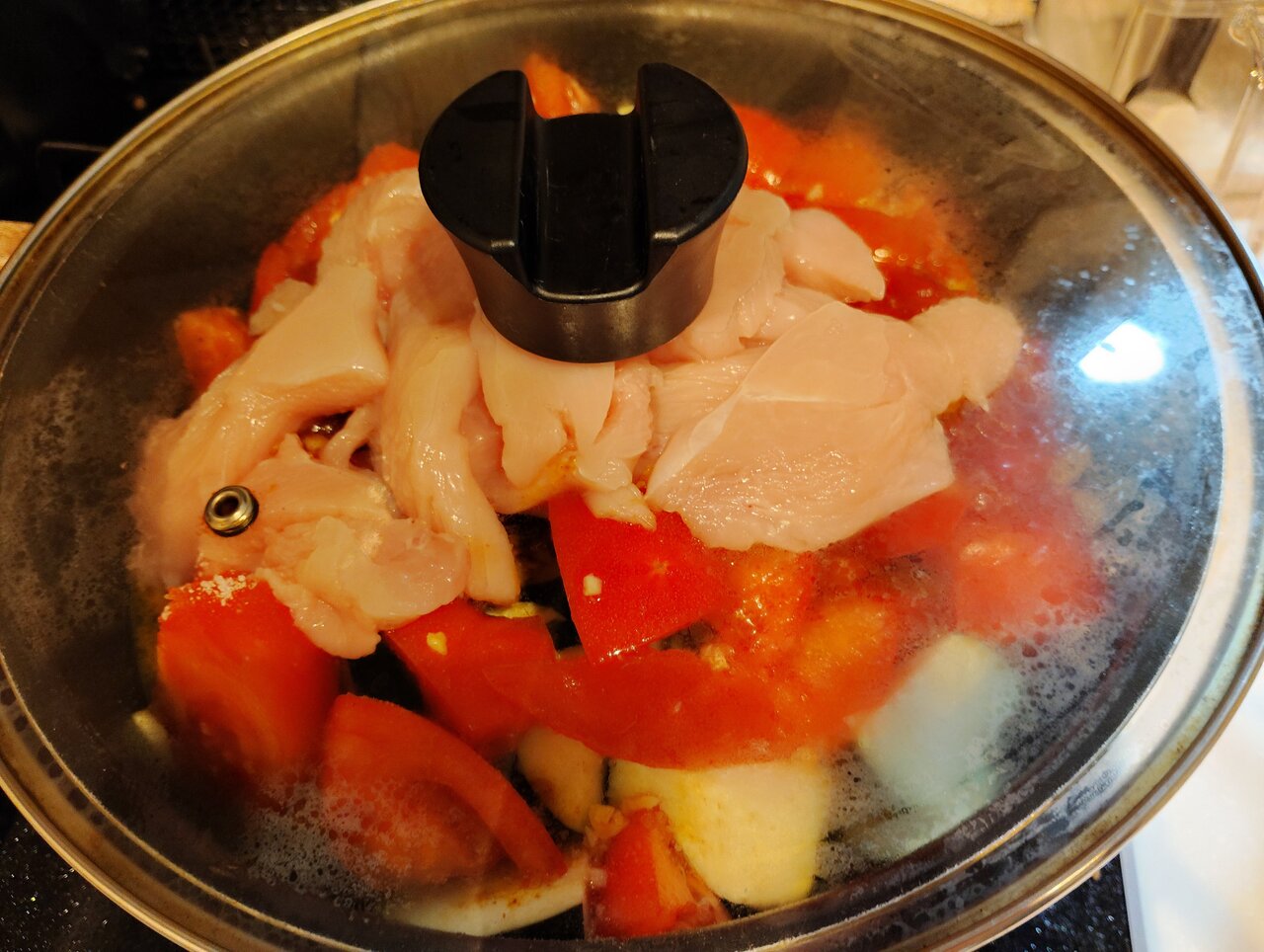 3.鶏むね肉に火が通るまで煮込む