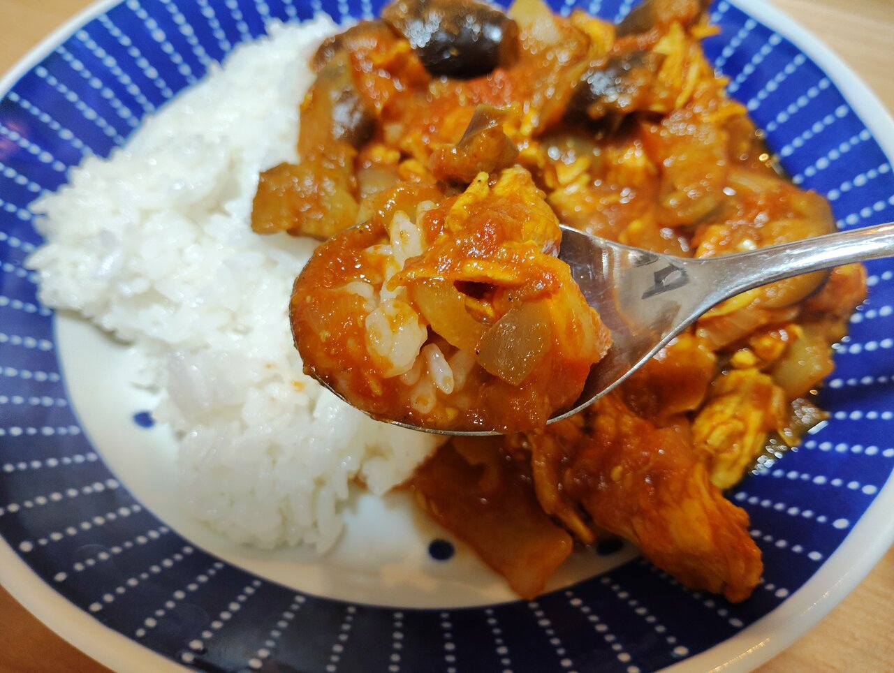 トマトのほど良い酸味とスパイシーさが見事にマッチ! 調理過程で少し水分は足しましたが、水分が蒸発するまでじっくりコトコトと煮込んだ甲斐があり、野菜のうまみと鶏肉のコクが凝縮されたカレーです。作り始めは、大きめの乱切り野菜たちにしっかり火が通るのか不安でしたが、野菜それぞれが原形をとどめつつも、食べるとトロッととろける食感で、まるでカレー専門店で食べるような味わいと楽しさも堪能できました。