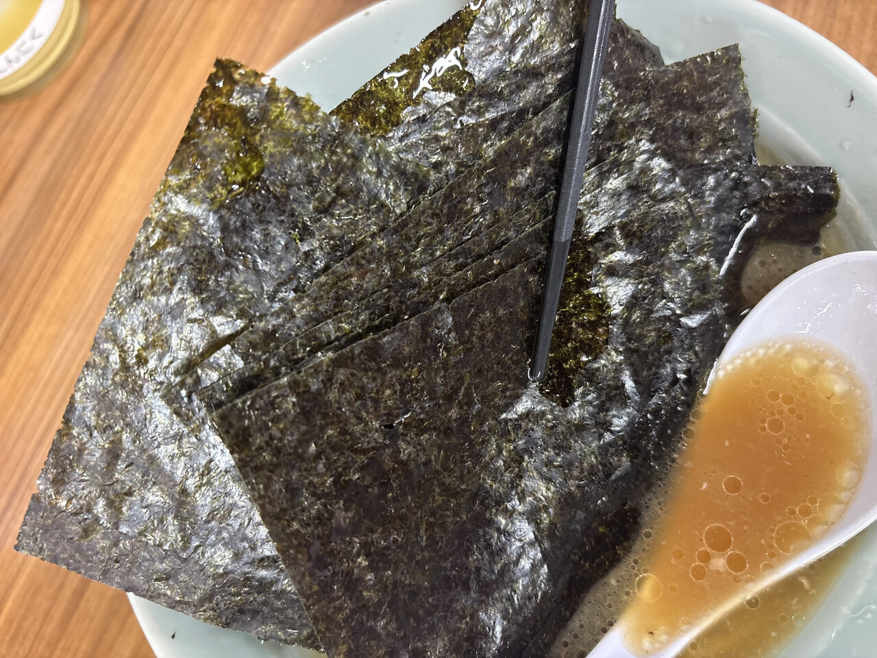 このラーメンの主役はやはり海苔です。丼を覆うほどの量ですが、ただ多いだけではありません。香りと質の良さがはっきり分かりました。