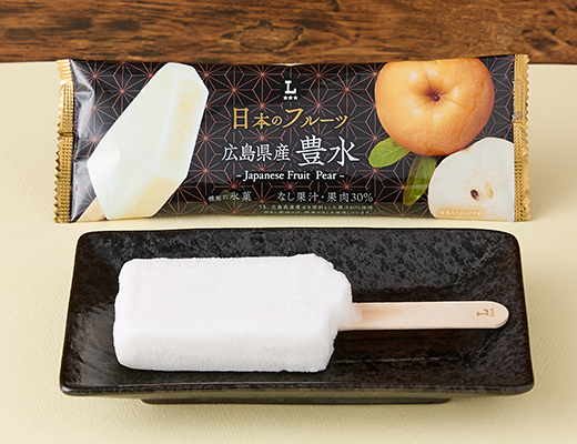 国産のなし果肉を使用した果肉ソースと、アイス部分との味わいの違いが楽しめます。71kcalというのも嬉しいポイント。