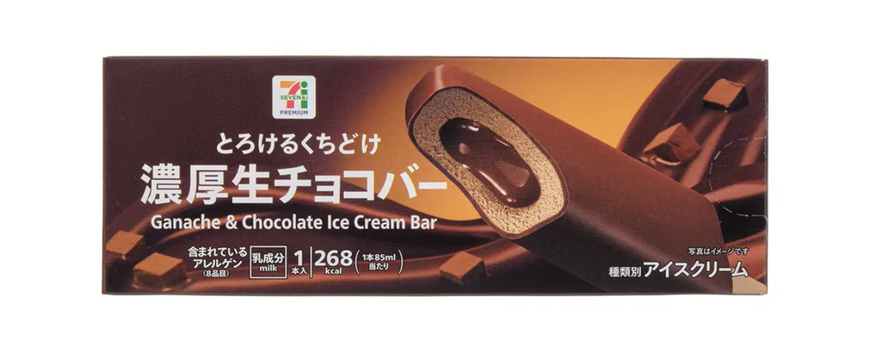 チョコレートコーティング、チョコレートアイス、生チョコ(センター部)のバランスが絶妙。カカオ本来の風味と濃厚な味わいを最後まで楽しめる一本になっています。