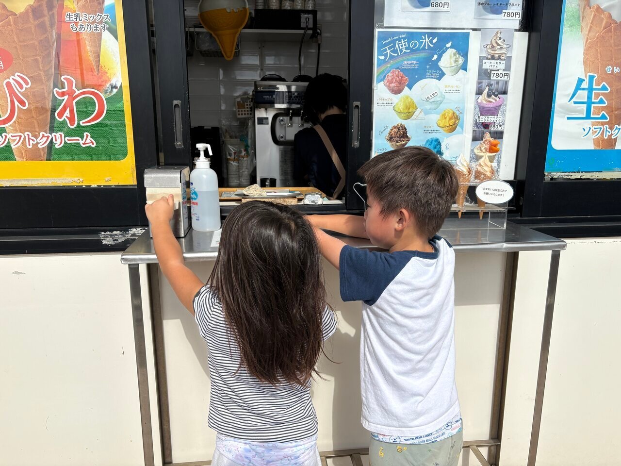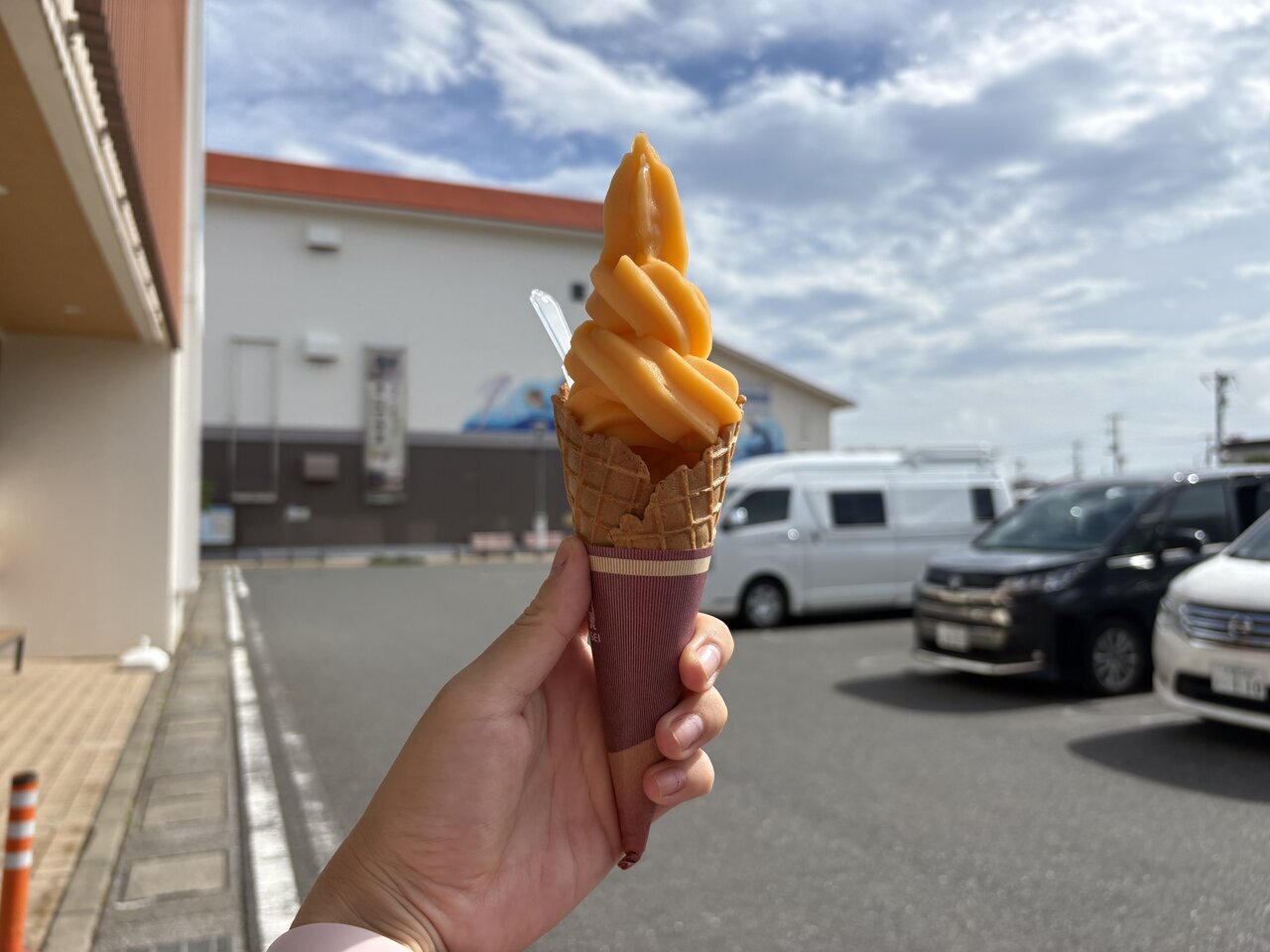 Taking a break to enjoy the popular loquat soft serve. I bought it at "Umi no Marche Tateyama" inside the building. The unique fresh sweetness of the loquat spreads throughout my mouth, and although it is rich, the aftertaste is refreshing.