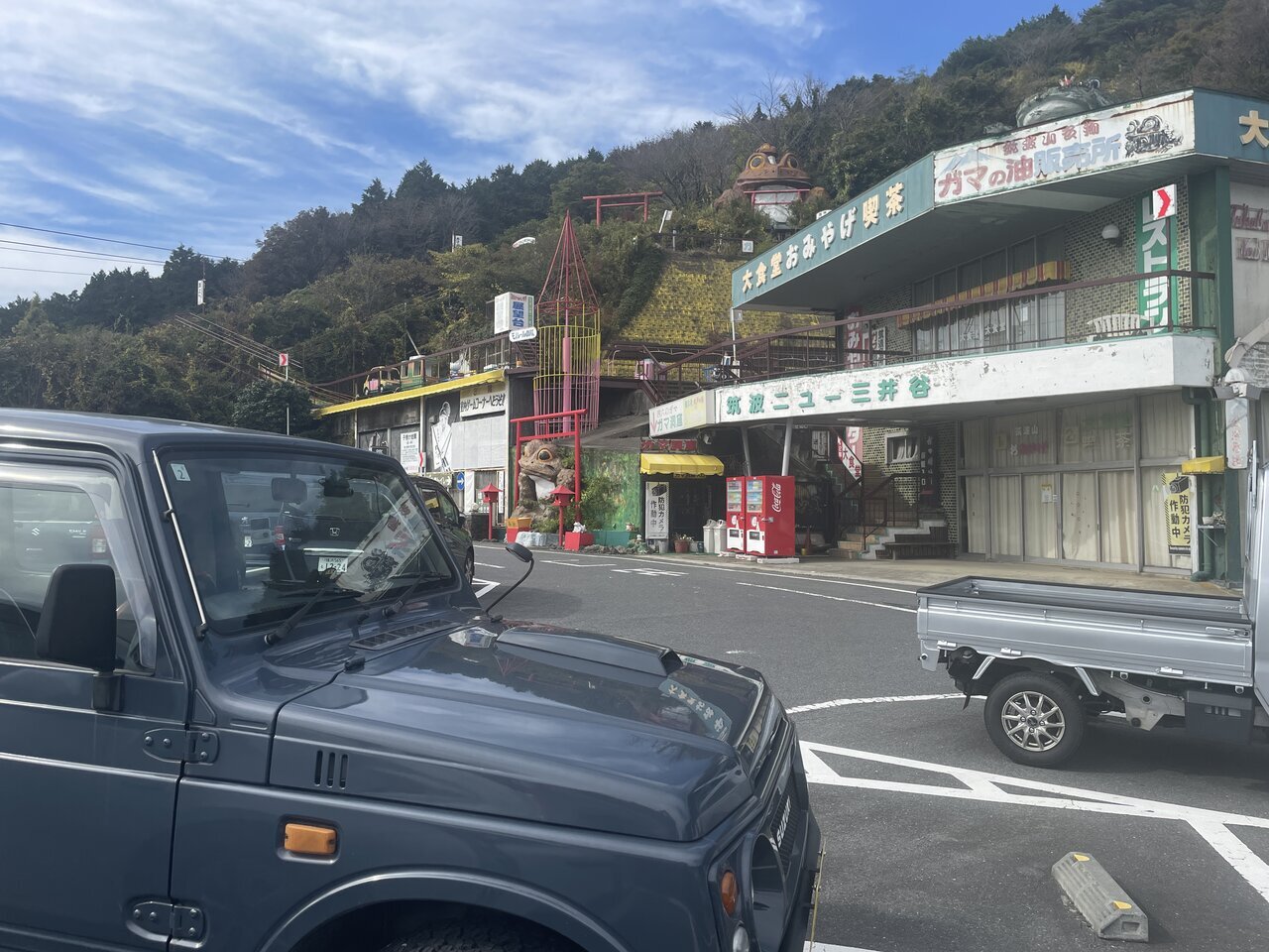 At the summit, there is something called the Toad Great Deity, and beneath it, there's a play area filled with playground equipment that evokes the Showa era. This scenery is likely to appeal to those who enjoy retro spots. It was a very attractive place where you could enjoy a nostalgic feeling during a meal break.