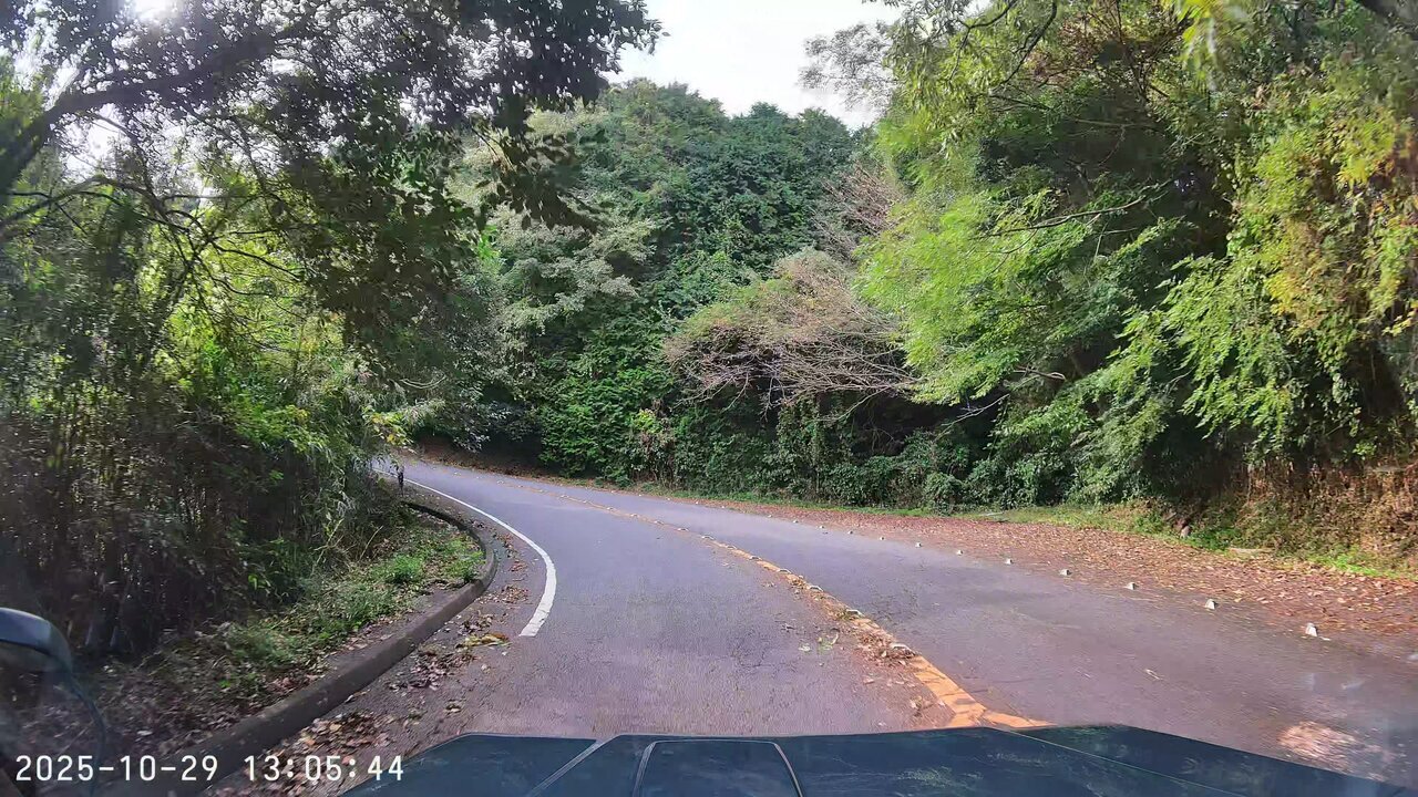 Now let's head back to the downhill course. When you actually drive it, there are continuous sharp curves, and the trees alongside the road are encroaching, giving a very steep impression. Each corner has tire marks, and many of the guardrails are crumpled, making me envision how this place looks during the late hours of the night.
