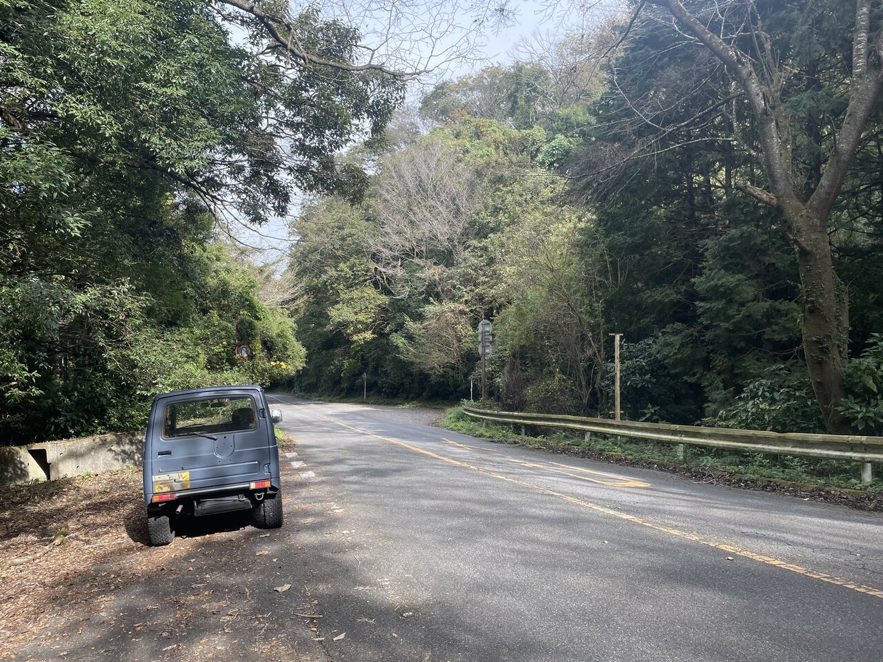 A view of the earlier spot from the uphill side. In the hill climb from the story, this straight stretch became the place where they lined up side by side and created the memorable scene of overtaking at the turnaround point.