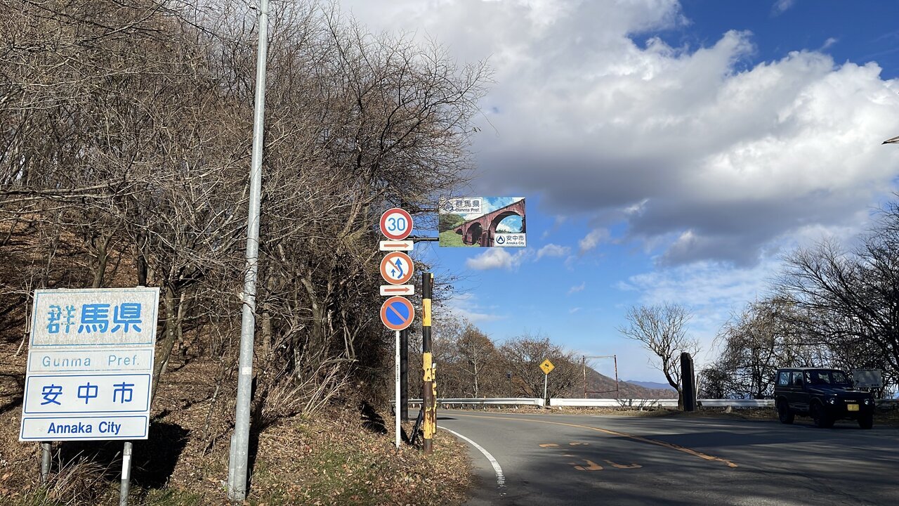 The starting point of the course is at the peak of the pass, which is located at the border between Annaka City in Gunma Prefecture and Karuizawa City in Nagano Prefecture, and the endpoint seems to be about 10 km ahead at the foot of the mountain.