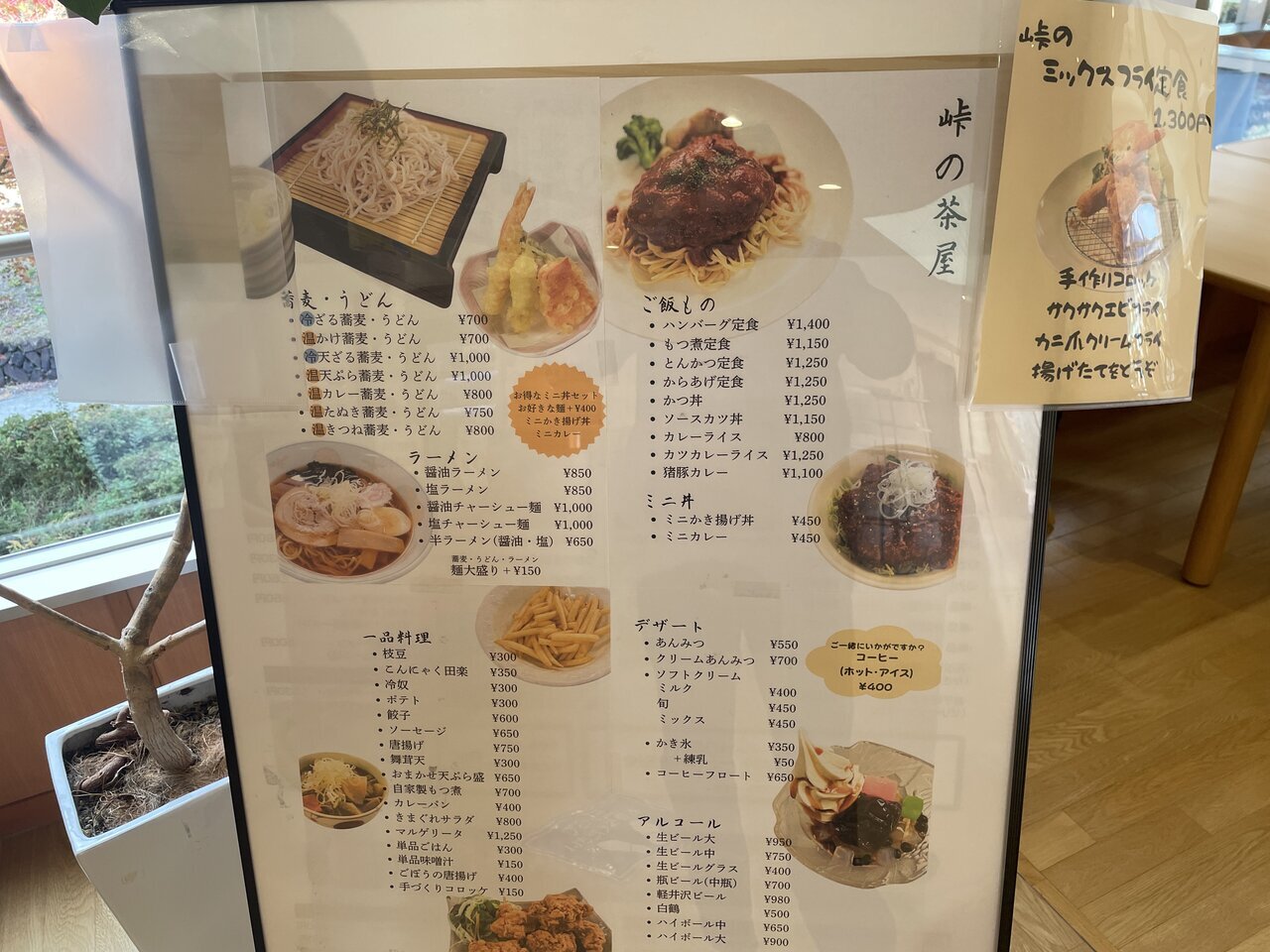 Looking at the menu of the cafeteria "Toge no Chaya," it offers not only soba and udon but also a variety of set meals. I decided on the "Toge no Mixed Fry Set Meal."