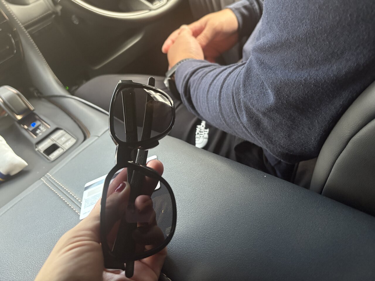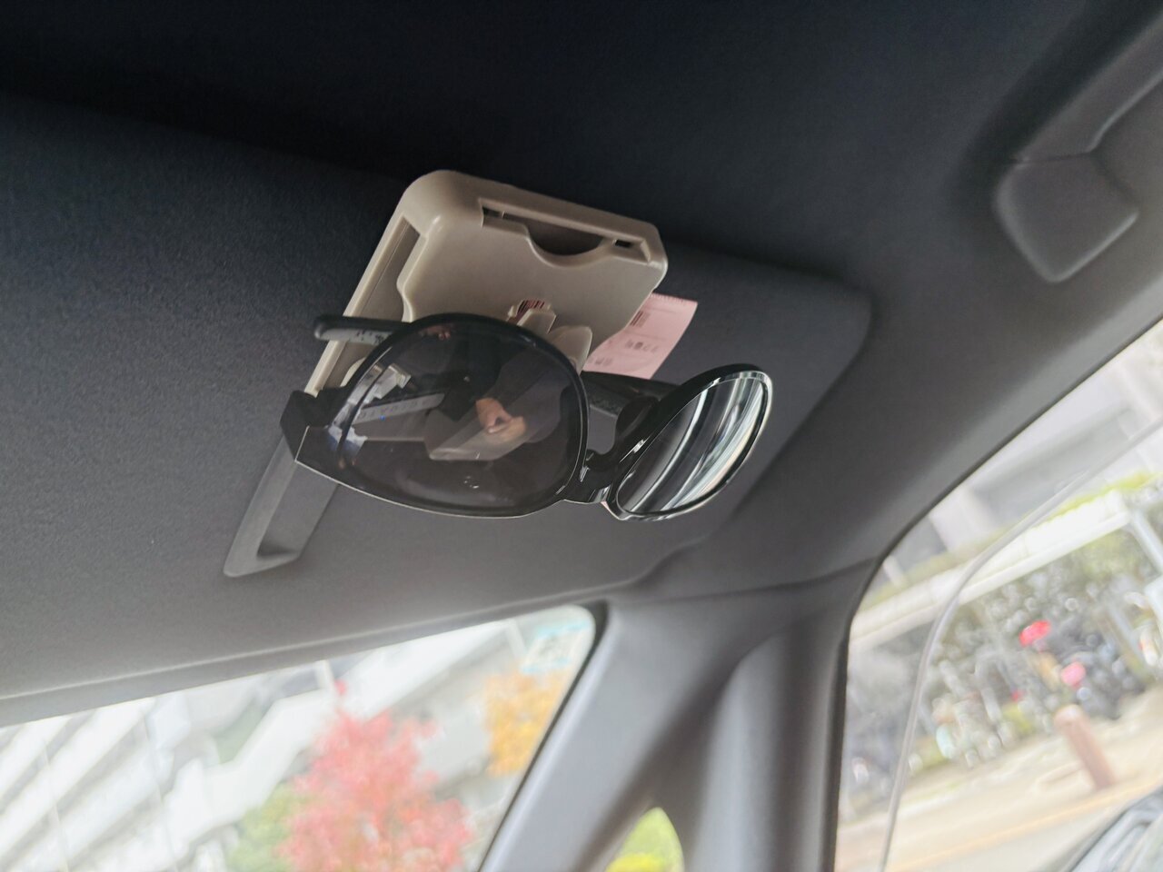 During the day, I can't drive without sunglasses, and I was always struggling to find a place to put them when I wasn't using them. If I put them on the dashboard, they slide and fall. If I put them in the drink holder, they're hard to take out.