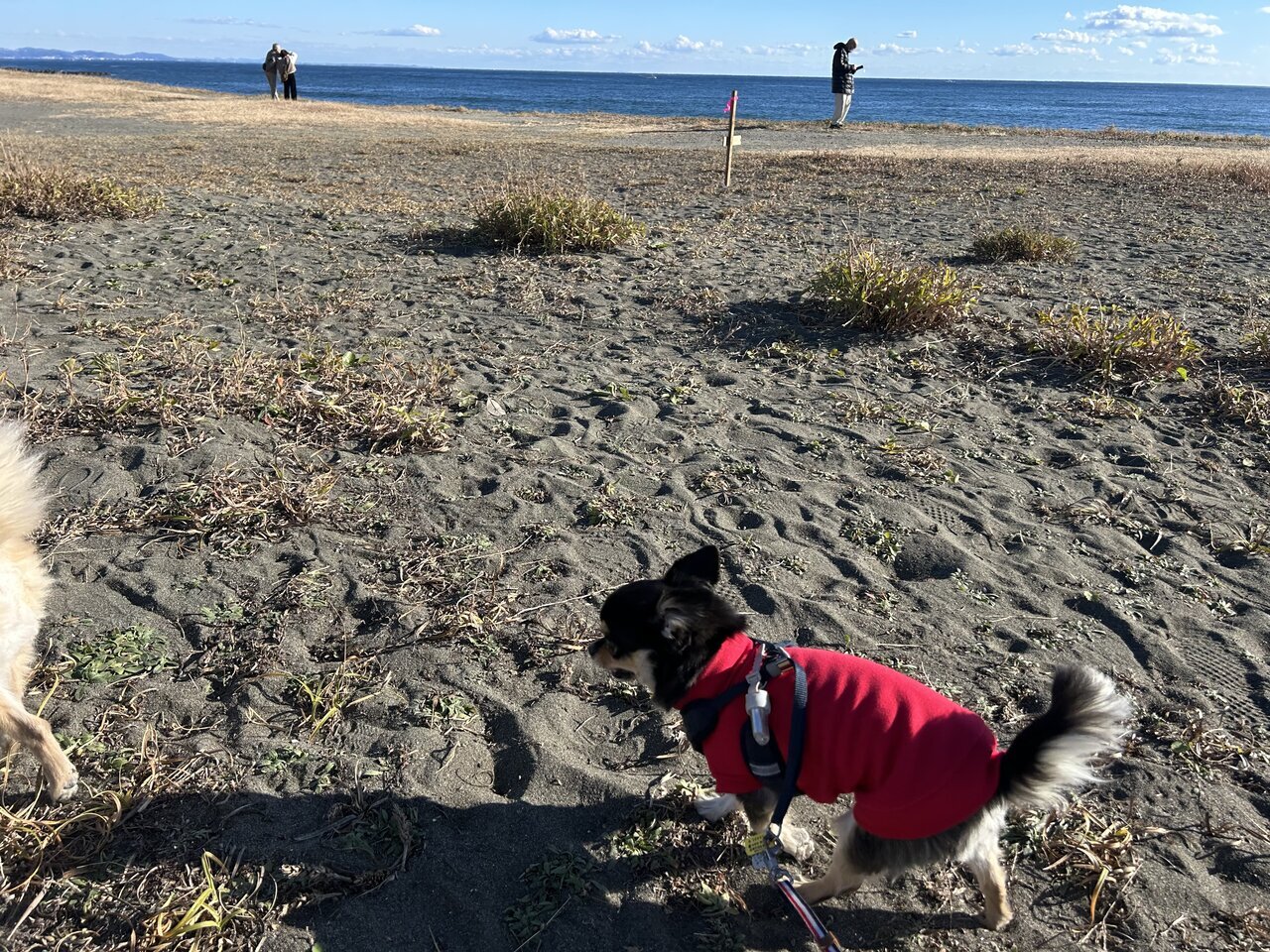 Finally, the seaside spread out before us. We often come to the sea on weekends, but they had never walked on the sand, so they seemed bewildered by the unfamiliar sensation. They stood there for about a minute, but then, hesitantly, they started to walk slowly.