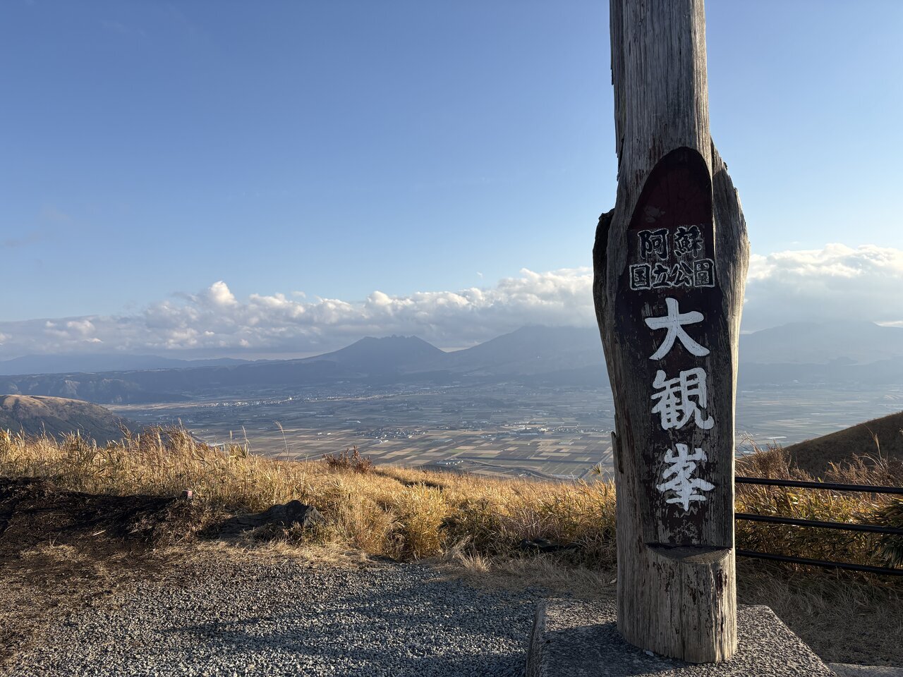 Visiting Daikanbo, a representative viewing spot of Aso, and spending drive time without a fixed plan. A few minutes spent stopping at a location with an elevation of 935 meters accessible by car helped shift my feelings from the busy everyday life.